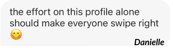 Our Swipe Right Profiles Guide is unique because no other dating guide (or course/product) offers anything like what we teach on getting noticed with your first picture. Instead of just providing general tips that you could get anywhere else, our one-of-a-kind proven strategy will blow away anything else you may have tried before. (We wouldn’t be here if it wasn’t that good)… You’ll be beyond shocked at the (match) difference one simple change can make. ← the bread and butter of what we teach in your Swipe Right Profiles Guide.